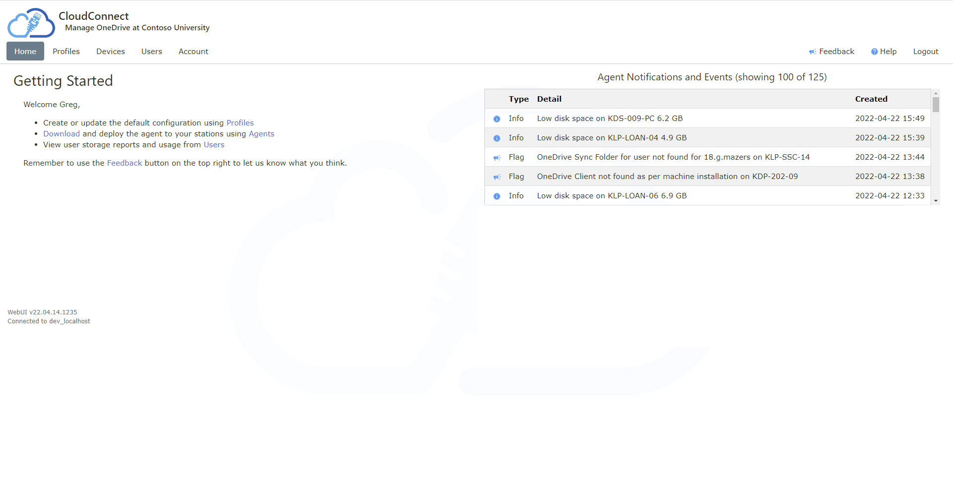 Centrally report third-party configuration concerns, such as conflicting group policies or low disk space