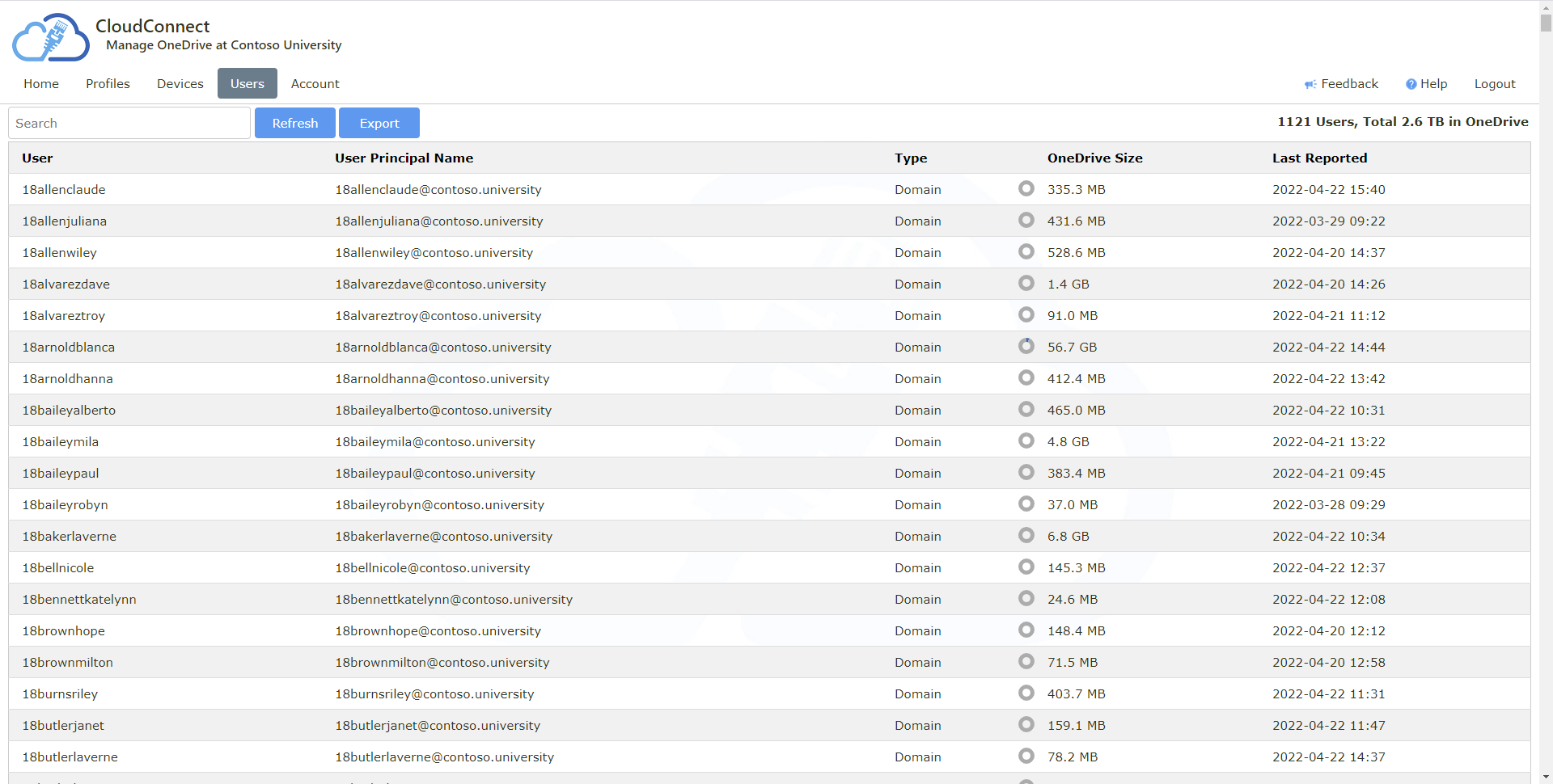 Multiple fully customisable web based configuration profiles assigned to users, groups and specific devices