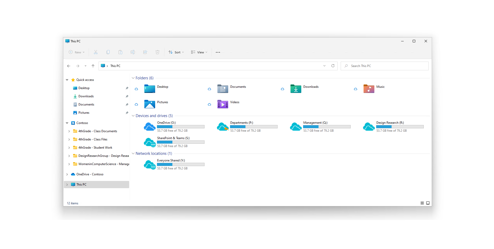OneDrive, SharePoint and Teams storage to drive letters or subfolders of drives under 'This PC'