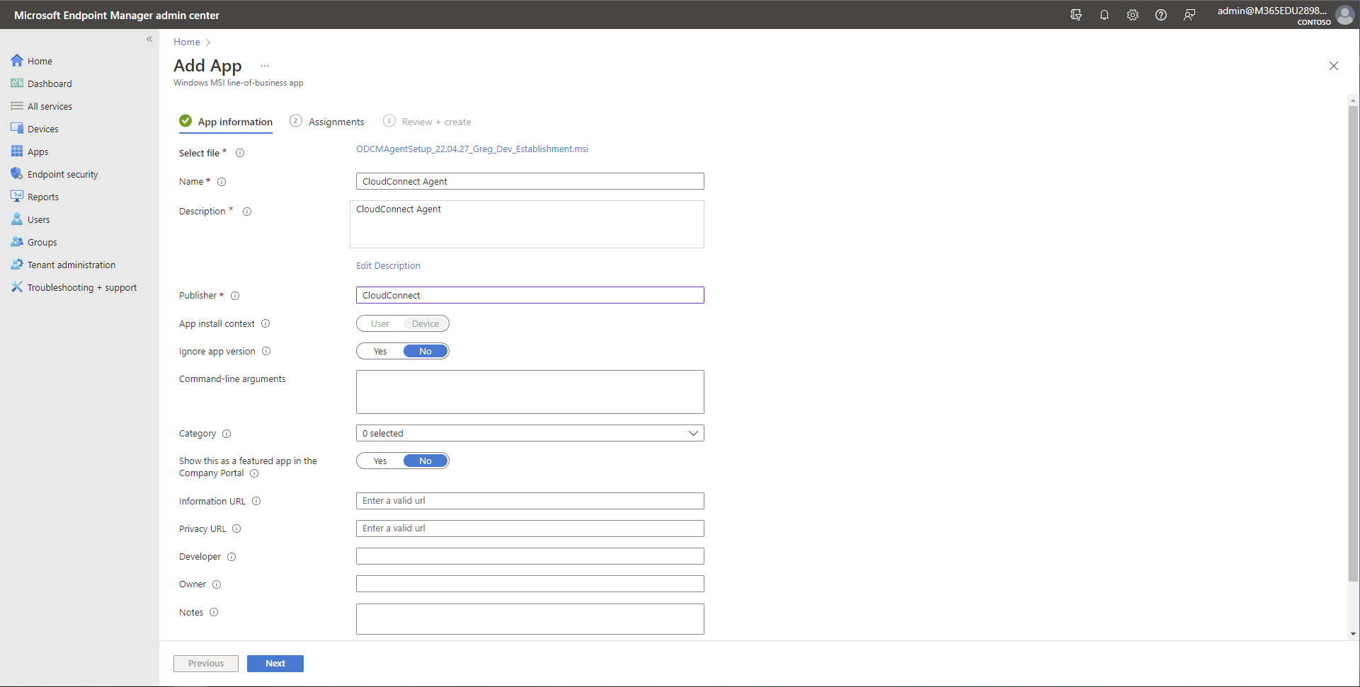 • Windows based devices for MSI deployment of the CloudConnect agent.