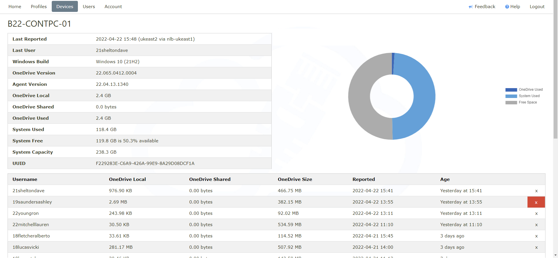 See agent cleanup jobs to identify if locally cached OneDrive data is the cause, and send an agent cleanup job if required.