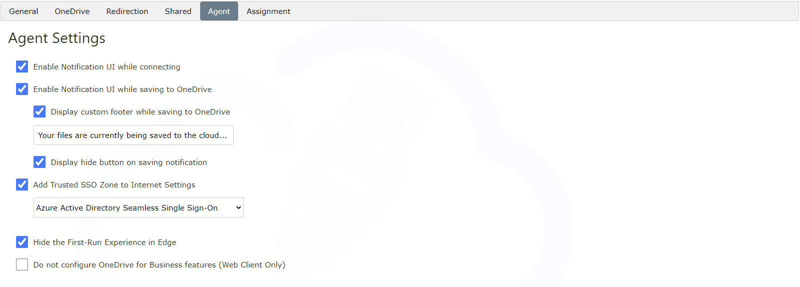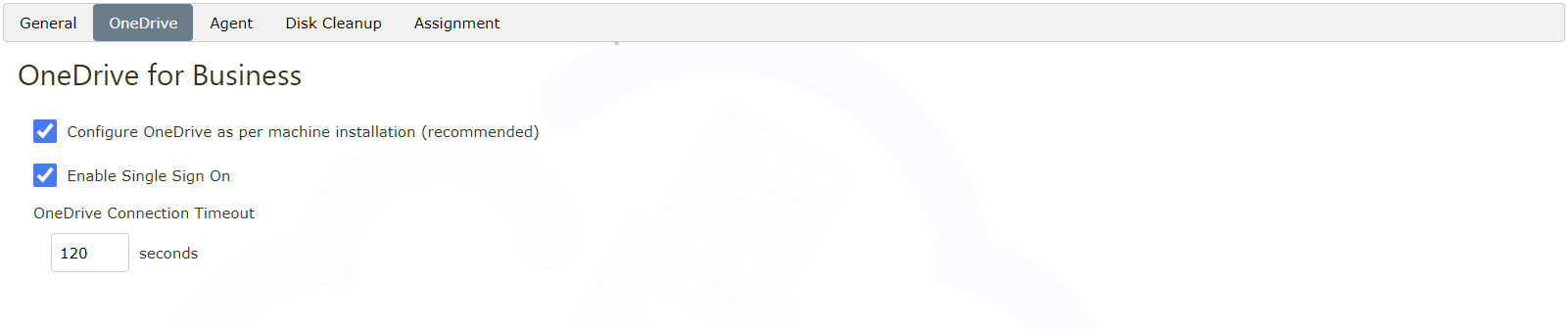 By default, the agent will wait 120 seconds for OneDrive to connect, before throwing an on-screen error. For devices connected over VPN, or machines that install lots of apps on first logon, you may wish to extend this timeout.