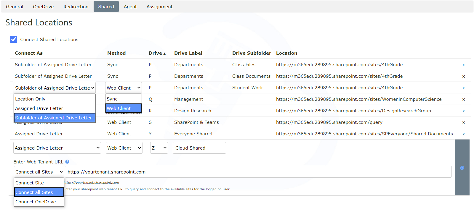 Connects the selected cloud storage location to a subfolder of a drive letter. You can add multiple subfolders for each cloud storage location. For example, you could have a "Departments" drive, and then add each department cloud storage location as a subfolder of that drive.
