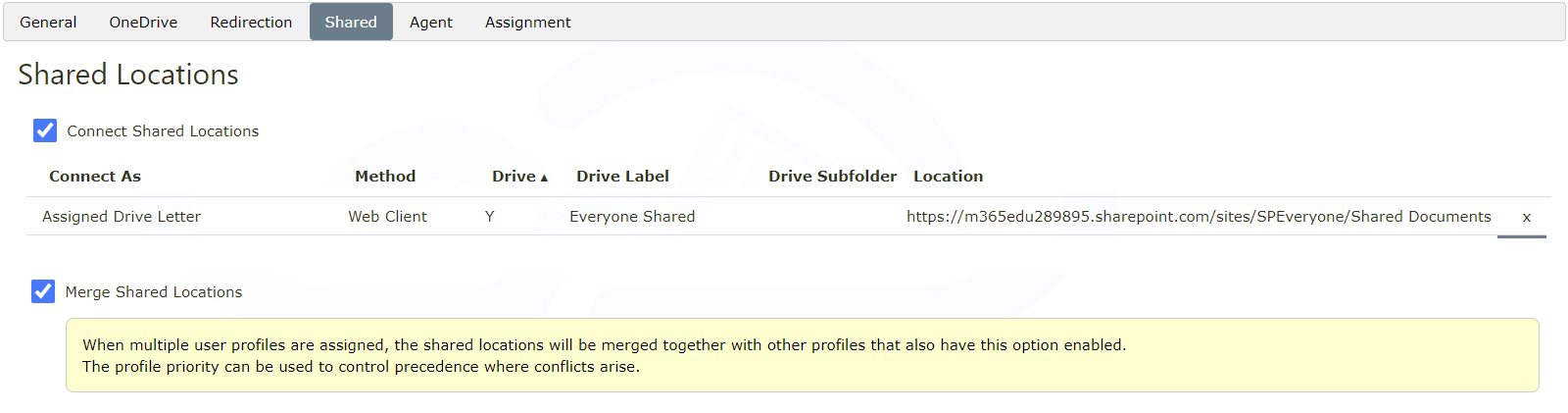 Redirects folders to the mapped drive letter location, instead of the default OneDrive client sync location.