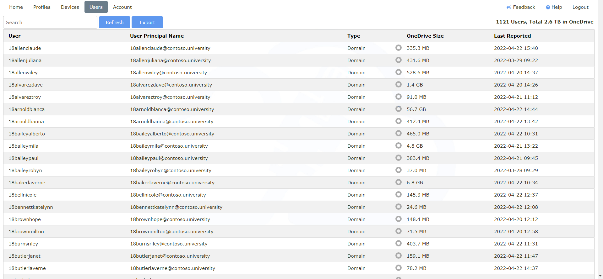 Device profiles apply machine-based settings, such as deploy OneDrive with single sign on and automatically cleanup disk space when users have not logged in recently.